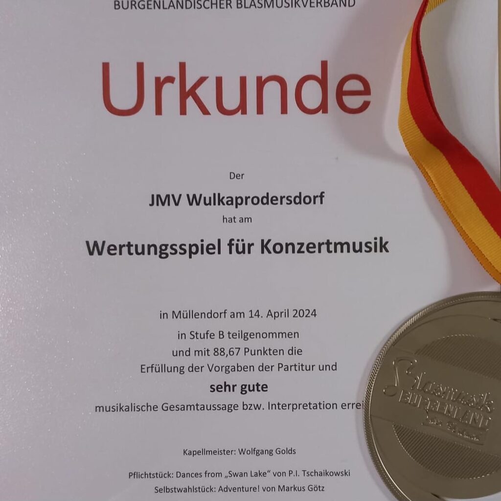 „Sehr gute musikalische Gesamtaussage“ bei der diesjährigen Konzertwertung in Müllendorf! Wir möchten uns bei den Juror:innen, beim BBV für die Organisation und natürlich bei unseren Musiker:innen für die intensive Probenarbeit in den letzten Monaten bedanken!